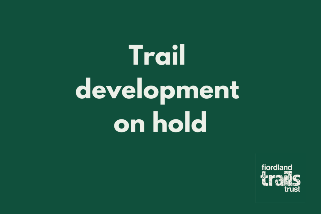 (April 2025) The Fiordland Trails Trust has opted to put construction of the latest trail extension from Patience Bay to Sinclair Road on hold for winter, due to challenges around trail width and safety concerns.